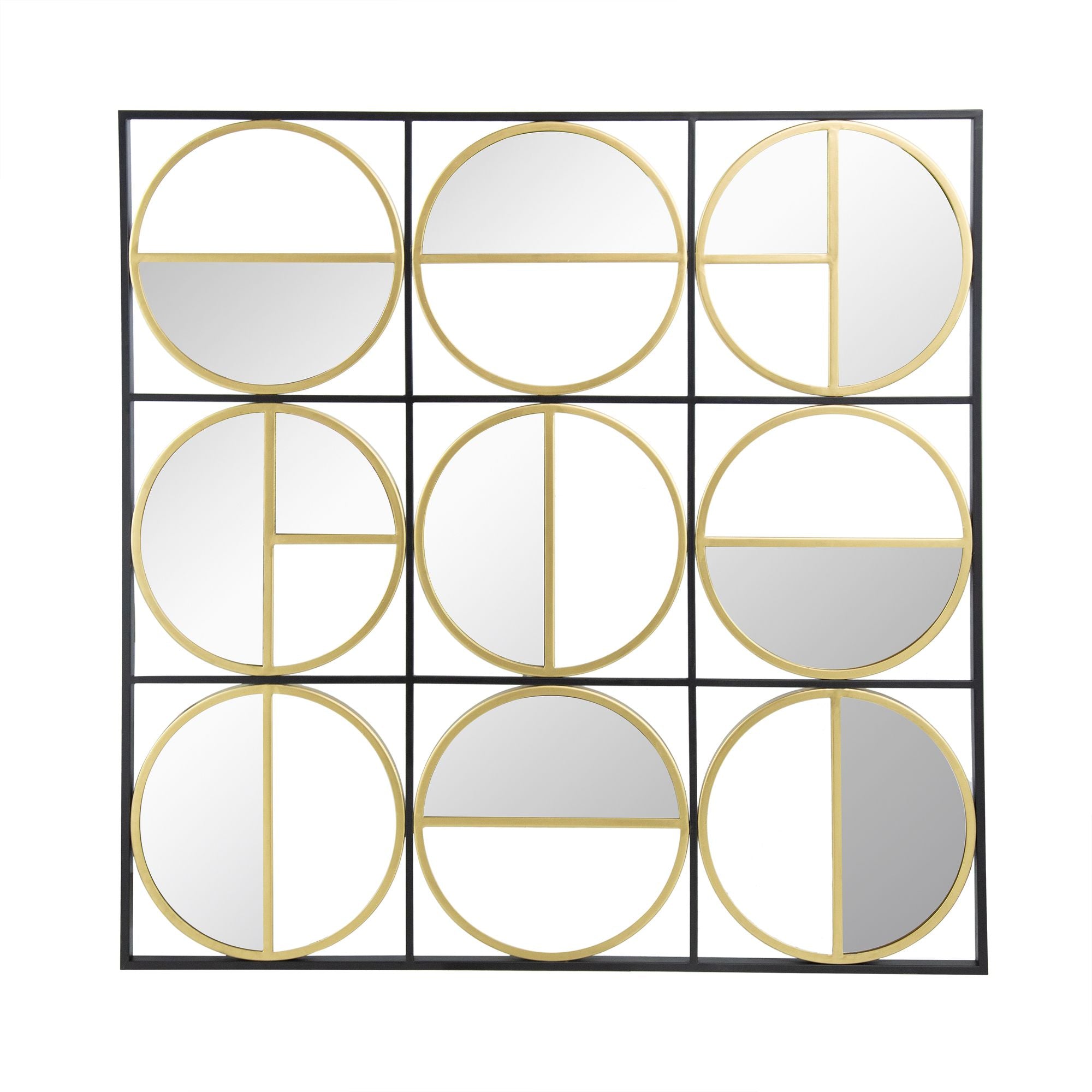 - Individual Mirror Dimensions: Various sizes within the geometric design.