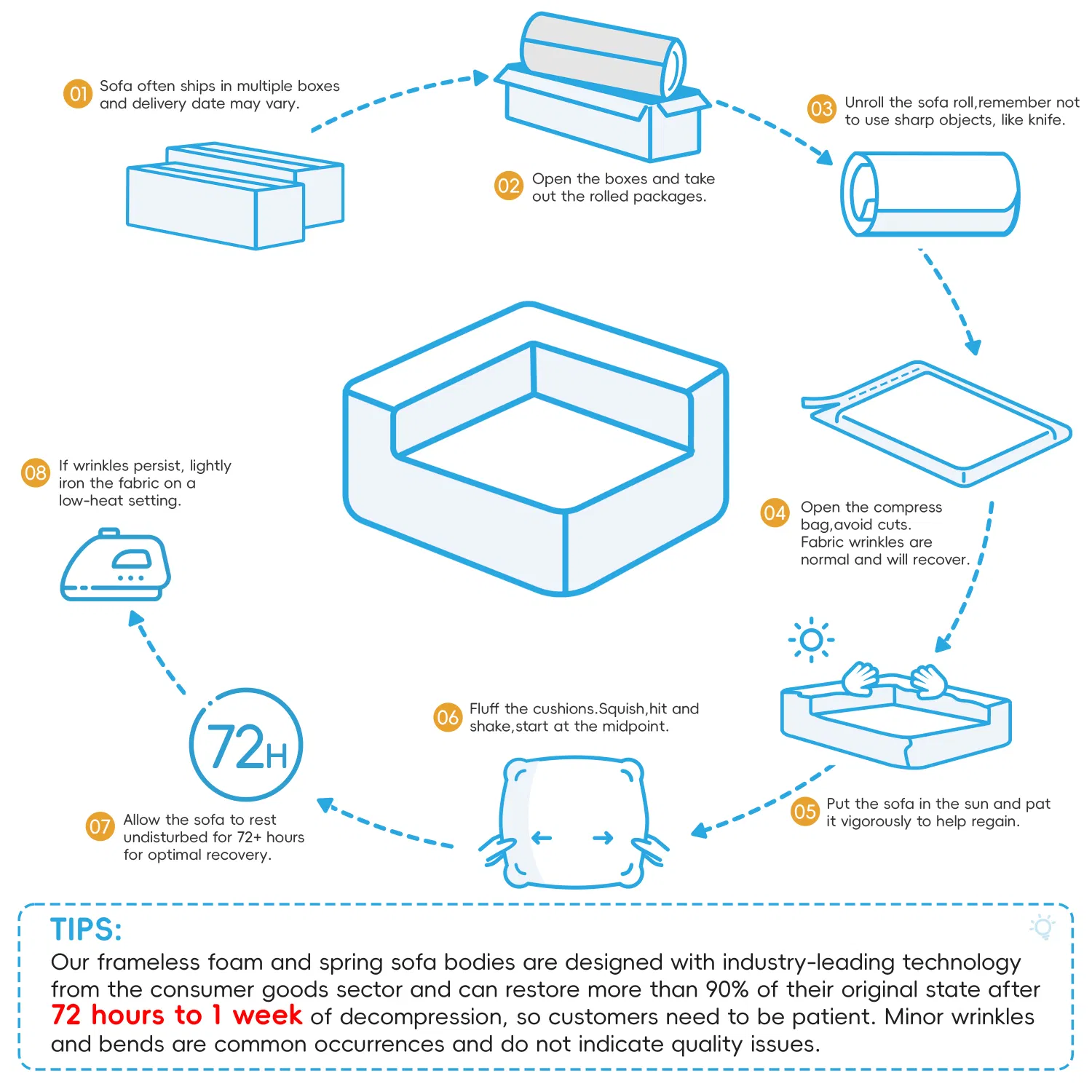 - No Assembly Required: This sofa arrives fully compressed and ready to use, so you can enjoy its comfort without the hassle of a complex assembly process.