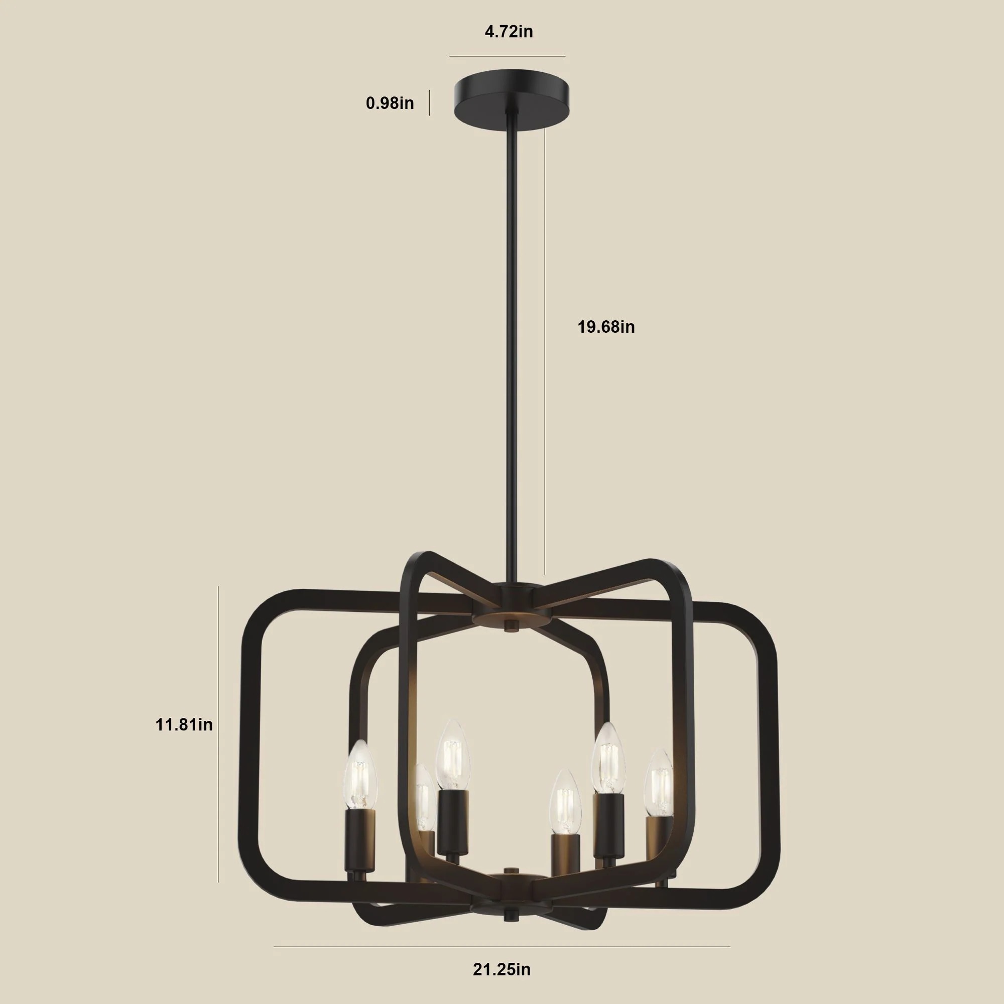 This farmhouse-style candle chandelier features a black metal frame and six light sockets, offering ample and adjustable lighting for dining rooms, kitchens, hallways, bedrooms, and more. Its versatile design complements farmhouse or vintage interiors. The adjustable height with the included rods and the easy-to-fit E12 bulbs (not included) are a bonus.