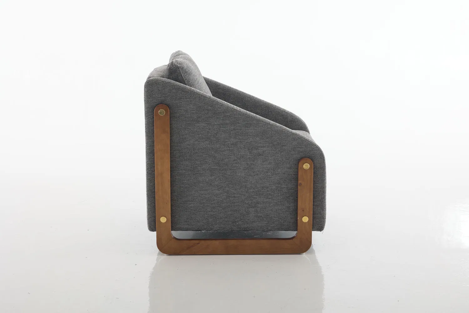 - Stylish Accents: The unique wooden side frame with golden nailhead trim adds a touch of classic detail, ensuring this chair is a striking centerpiece in any room.