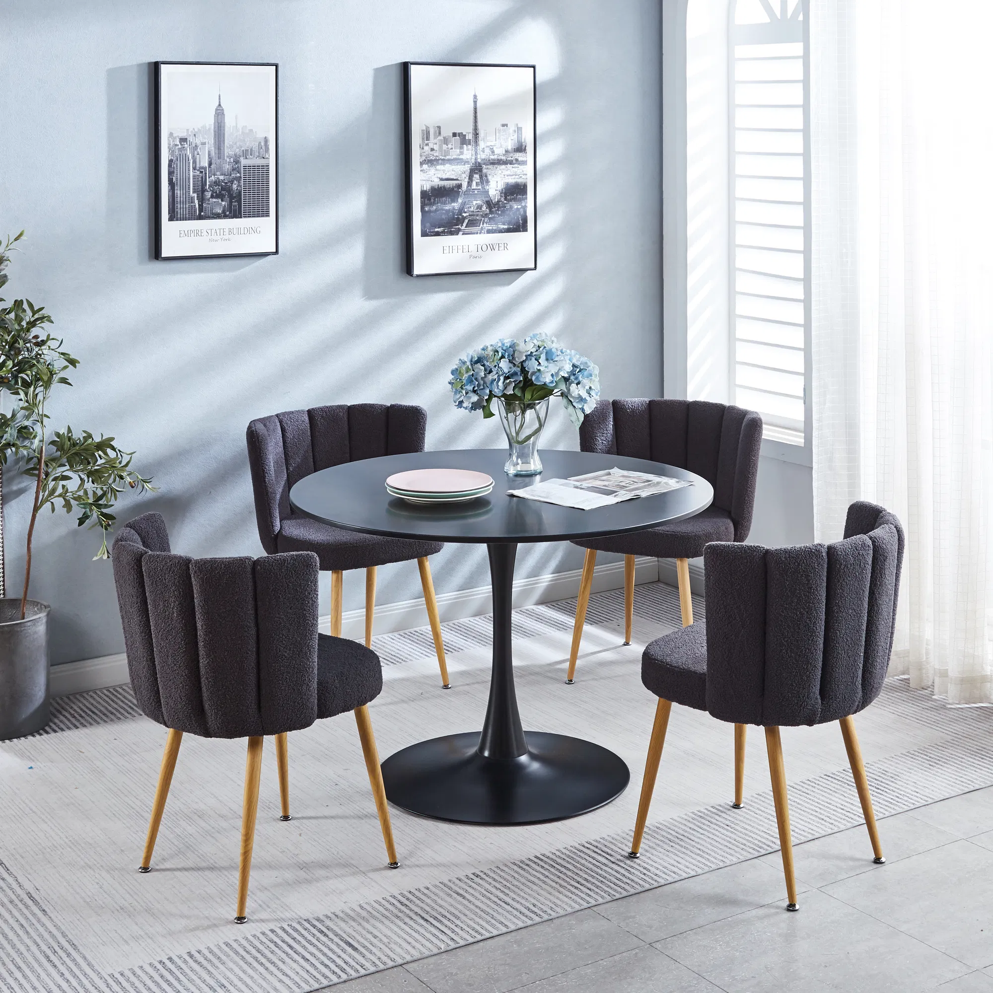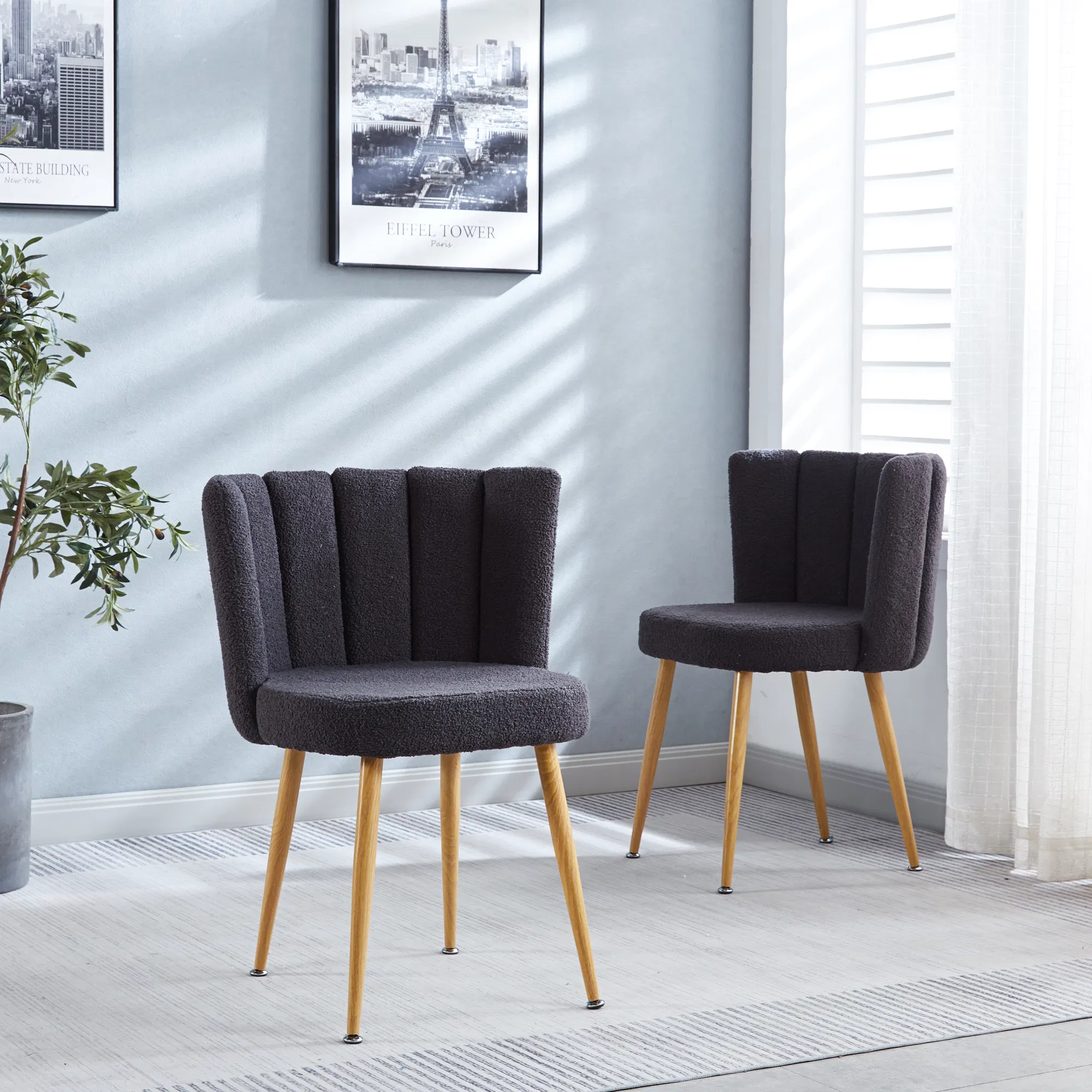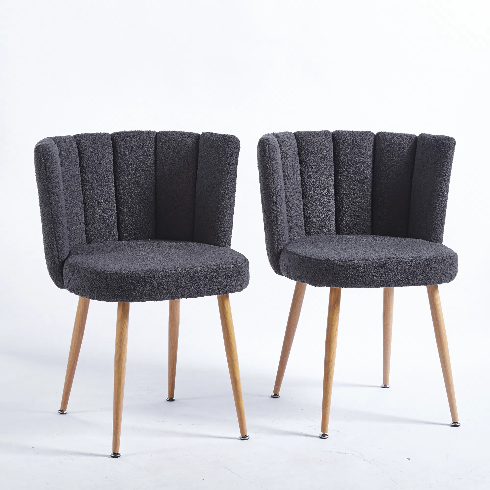 Add a touch of contemporary charm and comfort to your dining space with this set of two modern dining chairs. The ergonomic design provides a perfect fit for your body, while the soft, short-hair cushions offer a breathable and comfortable seating experience. The sleek, wood-look metal legs add a touch of natural warmth, making these chairs a perfect blend of style and practicality for your dining room, living room, or cafe.