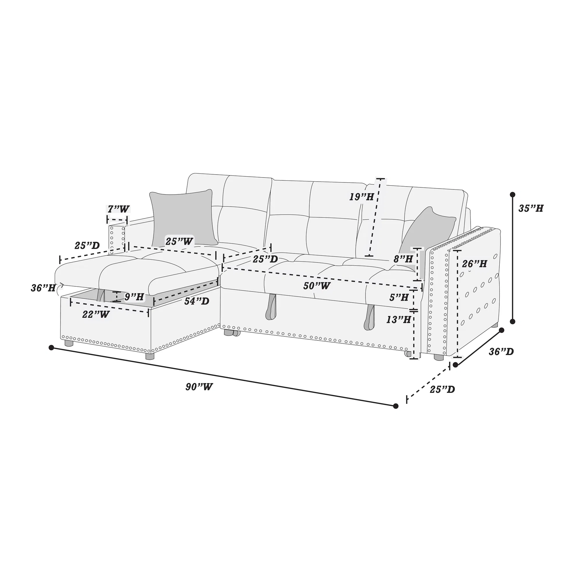 - Features: Tufted Design, Reversible, Storage, Pull-Out Bed