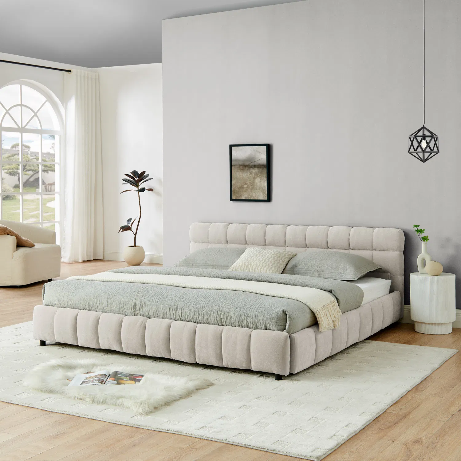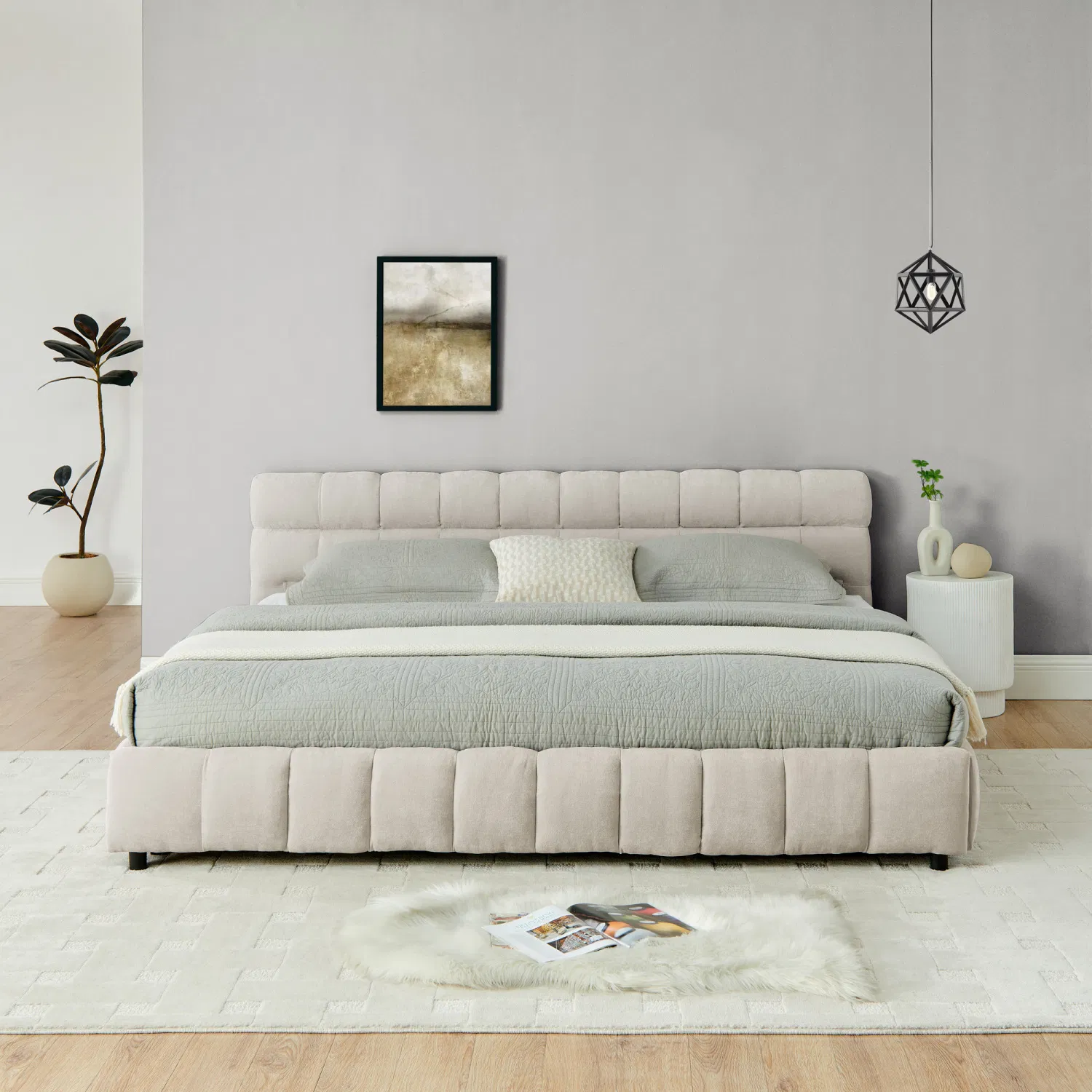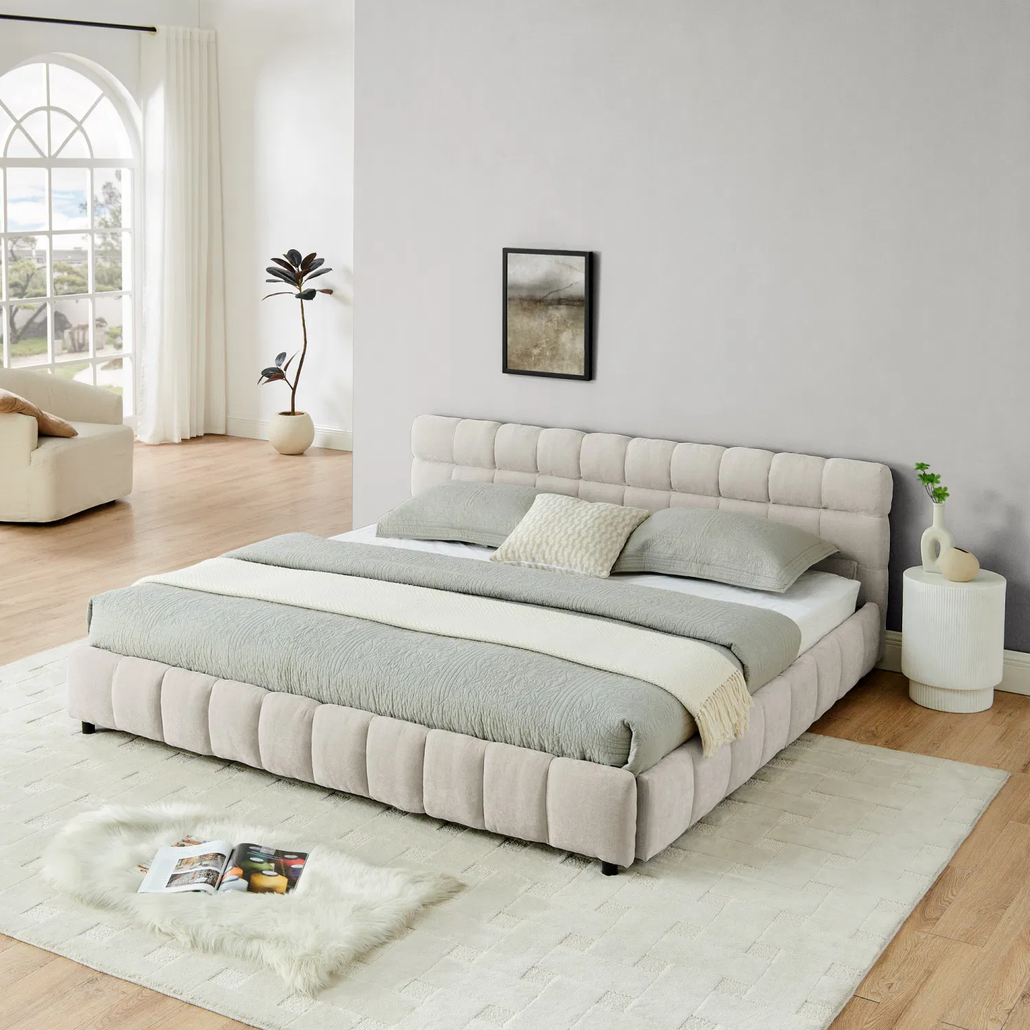 This King Size Upholstered Storage Bed combines modern engineering with everyday comfort. Constructed with a solid frame and foam-padded chenille upholstery, it delivers both stability and softness. The integrated drawers utilize smooth-rolling tracks for quick, effortless access to stored items. Measuring 88.5″ in length and 85.5″ in width, this bed provides generous sleeping space while maintaining a clean, grounded profile. Its noise-free structure and breathable chenille fabric make it an ideal solution for contemporary homes seeking a blend of function and style.