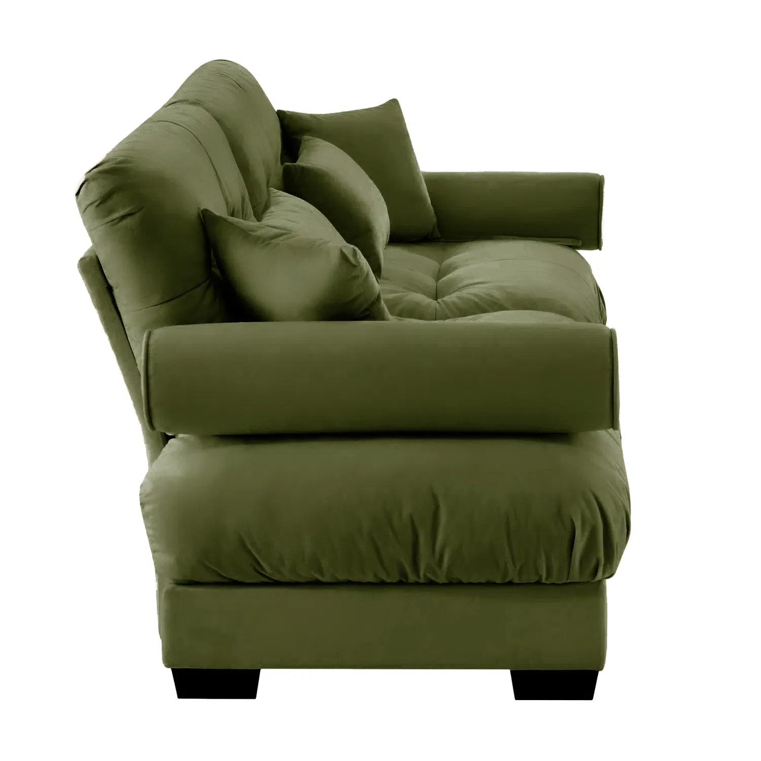Olive Green Velvet Sofa with Bolstered Arms, 94”