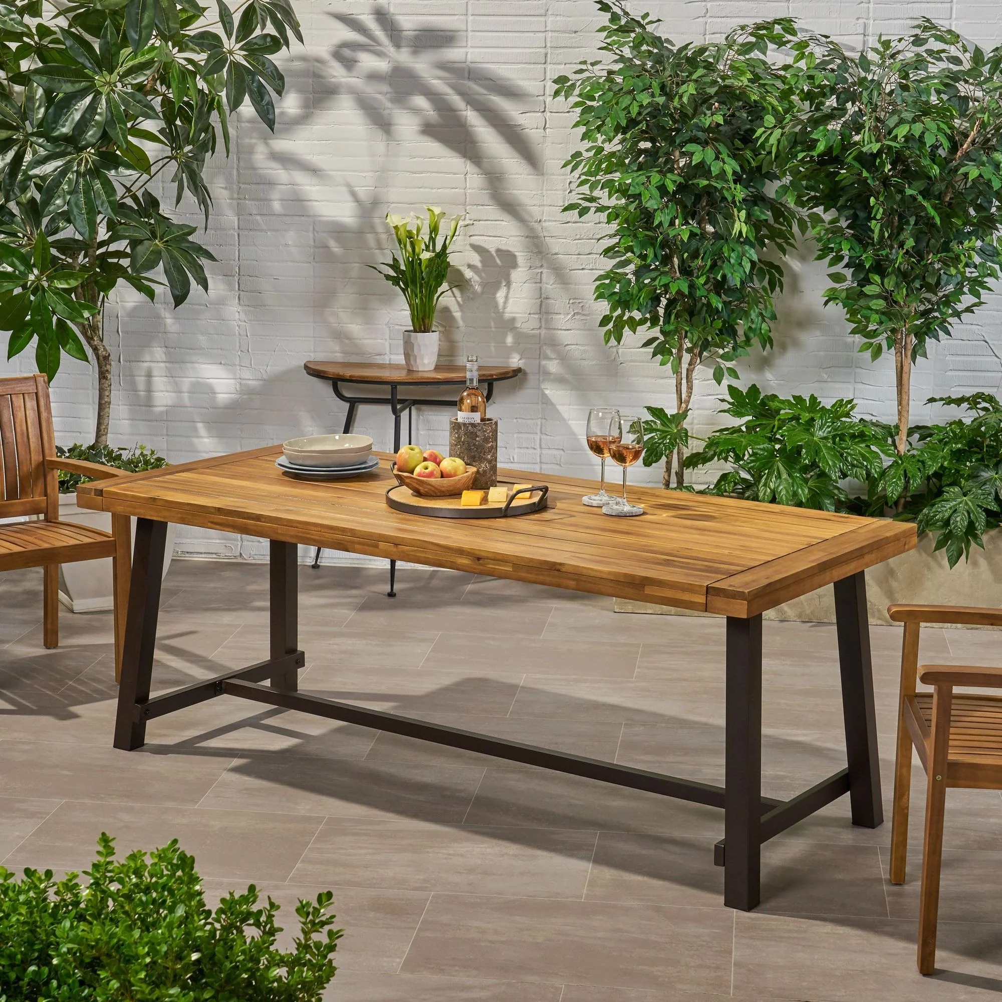 Modern Acacia Wood Outdoor Dining Table for 8 with Metal Frame