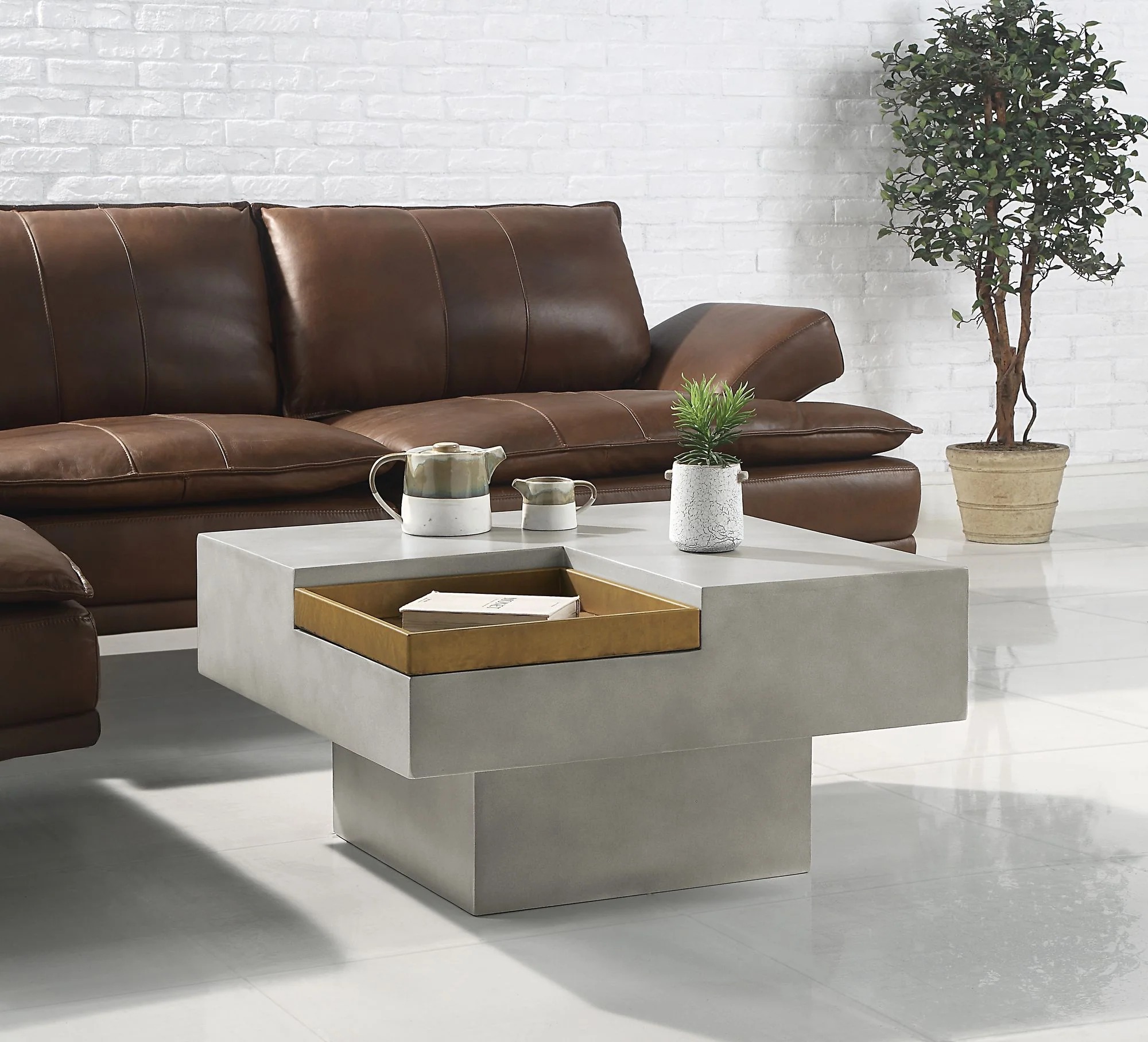 Weathered Gray Concrete Coffee Table with Storage