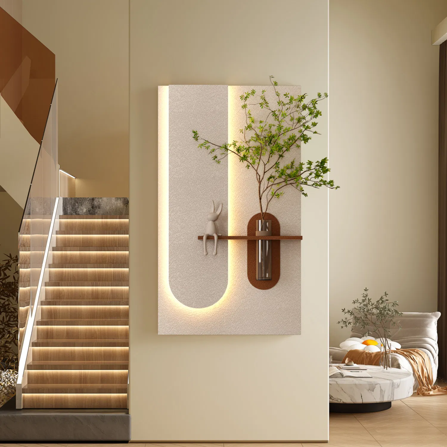 Bring the serenity of nature indoors with this stunning 3D wall decor art. Constructed from durable, multi-layered sandstone with a frosted handmade texture, it features a glass vase, lifelike artificial green plants, and a small rabbit figurine for a unique, dimensional look. Customize the ambiance using the remote control to select from three adjustable color temperatures and brightness levels. Designed for versatile placement in living rooms, bedrooms, or hallways, this piece uses a USB interface for power, ensuring easy installation that preserves the wall’s integrity.