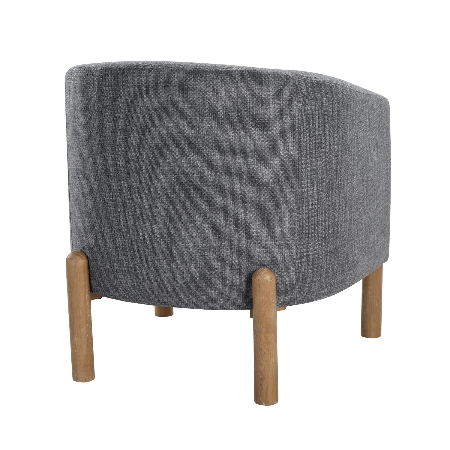 Modern Gray Fabric Barrel Accent Chair with Wood Legs
