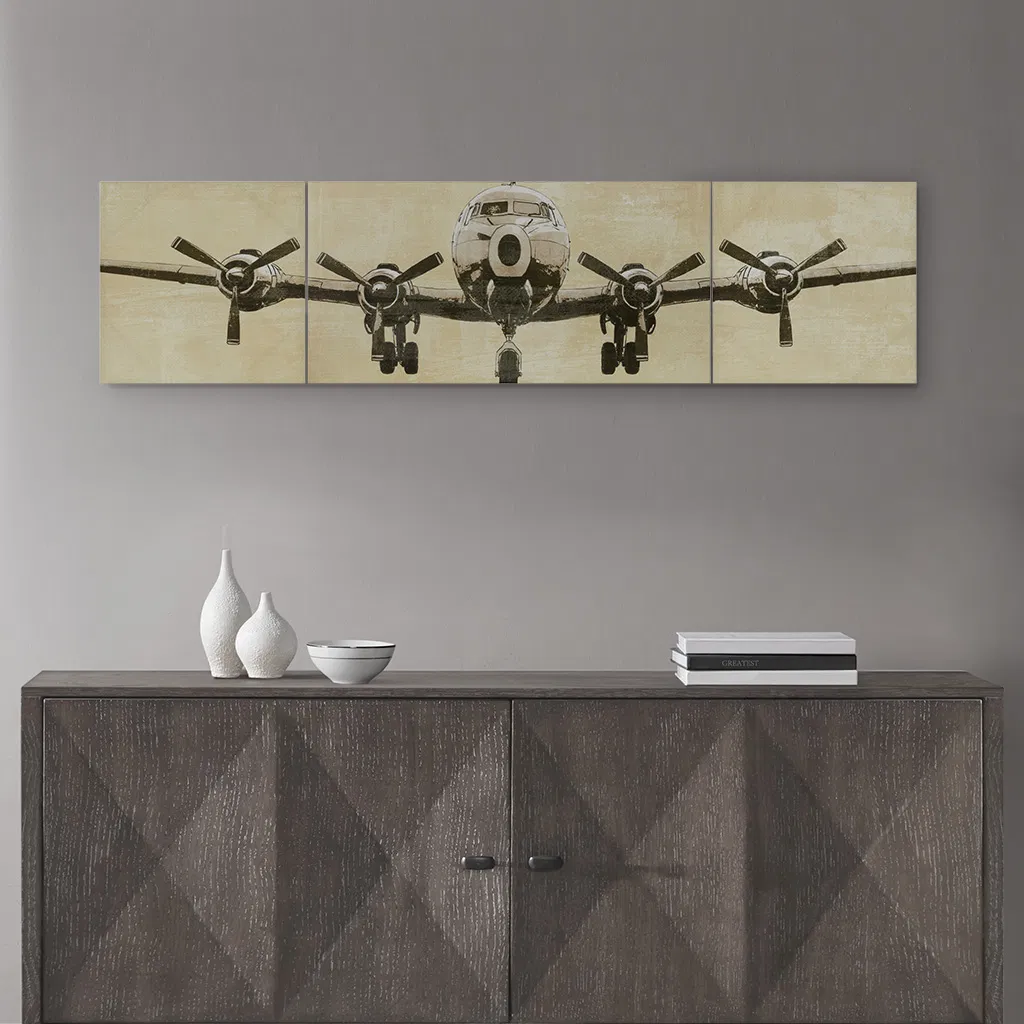 Triptych Airplane 3-Piece Canvas Wall Art Set, Gray