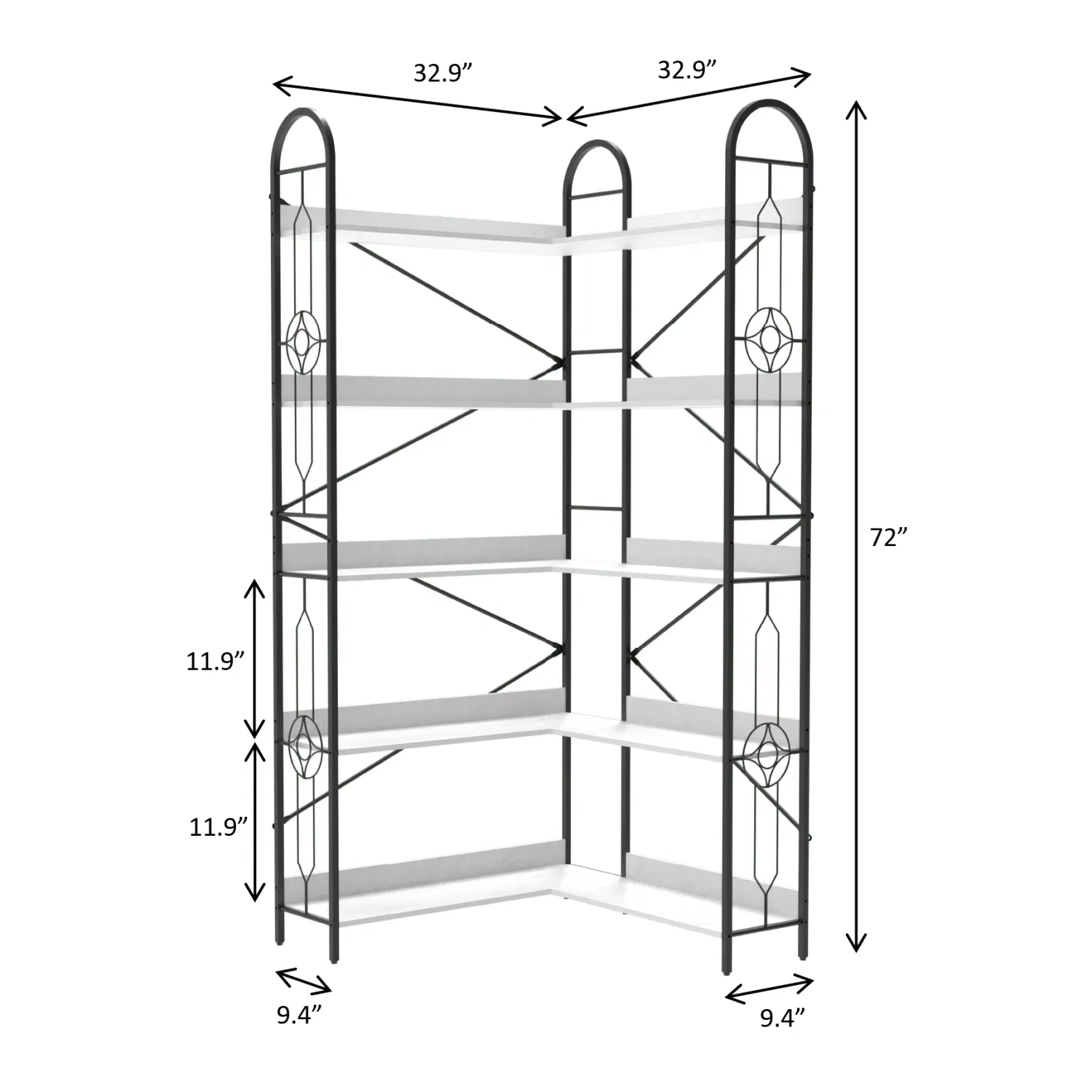 White 5-Tier Corner Bookshelf, 72”